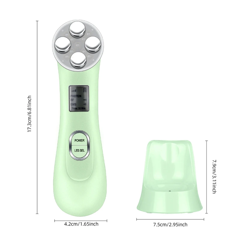 Особенности:Этот инструмент для красоты использует ток EMS, технологию электропорации, радиочастотную радиочастоту и светодиод, что является многофункциональным, так что он может решить многие проблемы с кожей.В первую очередь. Ток EMS может активировать клетки и создать новый коллаген, наконец, сделать вашу кожу более твердой, более энергичной и упругой, улучшить мелкие морщинки на поверхности кожи.Во-вторых. Технология электропорации может создать разрыв между клетками в течение короткого времени, что делает кожу поглощать больше средств по уходу за кожей.Третий. Радиочастота RF может облегчить боль в мышцах и усталость кожи, облегчить напряжение кожи, уменьшить покраснение, отек и боль, и сопротивляться повторному росту акне.Четвертый. Светодиодные лампы имеют розовый, желтый, зеленый, синий и розовый свет вспышки шесть режимов. Этот светодиодный свет может отбеливать кожу, осветлять тон кожи, способствует регенерации коллагена, подавляет чрезмерную продукцию меланина и сужающихся пор и т. Д.Продукт имеет 5 уровней интенсивности на выбор, вы можете настроить его в соответствии с типом кожи и личными предпочтениями.Этот косметический инструмент не токсичен, имеет боковый эффект, безболезненный, подходит для всех типов кожи.Встроенная светодиодная лампа не будет генерировать тепло.Спецификация:Материал: АБС-пластикВход: 5 в пост. Тока (500 мА)Мощность: Макс 10 ВтЕмкость аккумулятора: 850 мА · чВремя зарядки: 3 часаВремя использования: 10 минут/времяВремя в режиме ожидания: 40 днейЦвет: белый/зеленыйРазмер: 17,3*4,2 см (Д * Ш)Вес: 198 гПодходит для: ЖенщиныСодержимое упаковки:1 x инструмент для красотыUSB кабель (1 шт.);1 х Зарядная база1 х Руководство пользователя (на английском языке)