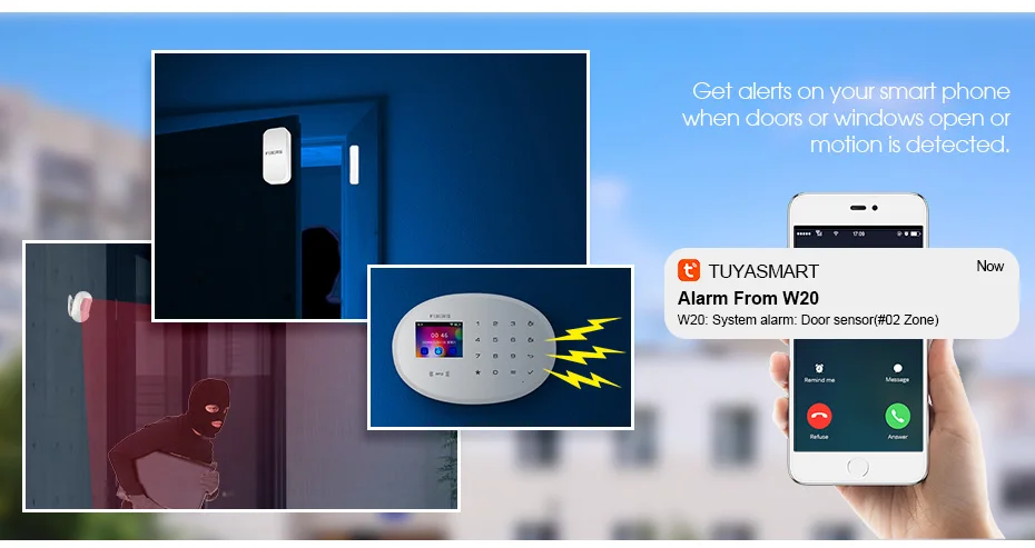 Если воры вторгаются, система сигнализации выдаст Оповещение на 80 дБ, предупредит соседей и задерживает потенциальных нарушителей встроенной сирены и проводной сирены на 80 дБ