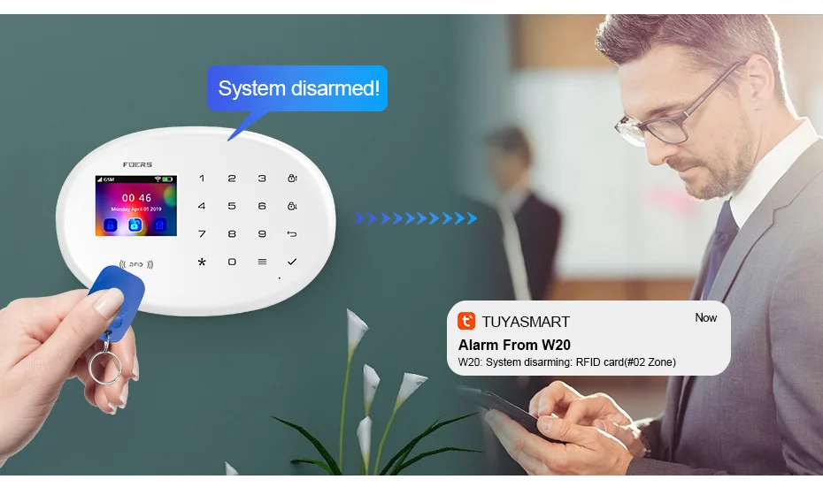 С бесплатным приложением для смартфонов IOS/Android, его можно легко контролировать с помощью оружия, обезвреживания и домашних режимов с простым пультом дистанционного управления и rfid-картой