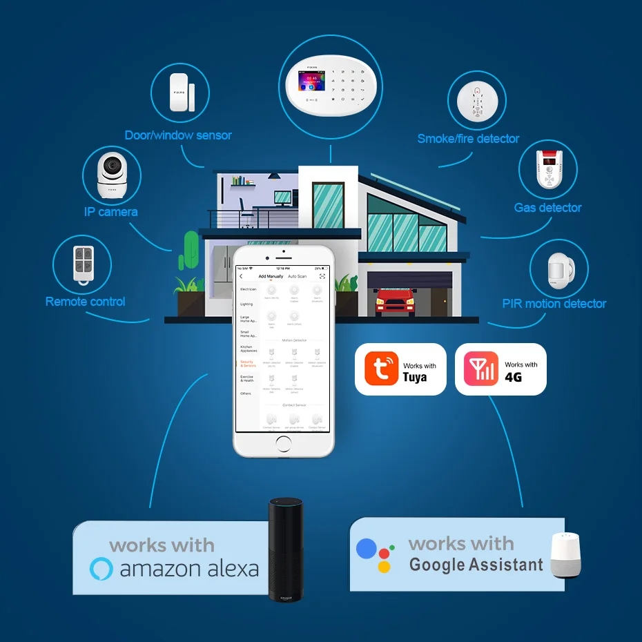 Система сигнализации FUERS W204 4G GSM WIFI Tuya, комплект для умного дома, беспроводная система безопасности, IP-камера с управлением, автоматическая сирена