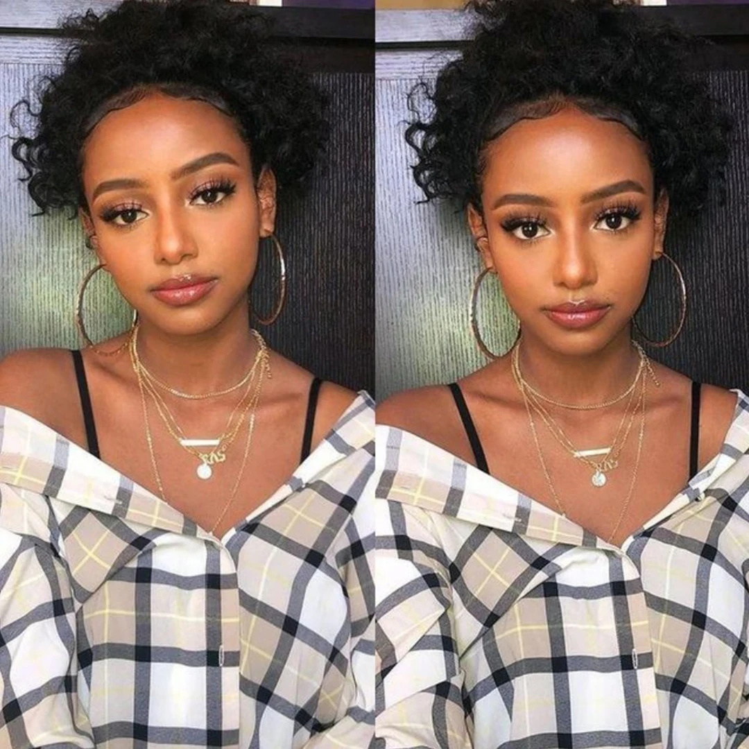 Короткие вьющиеся человеческие волосы, парики с глубокой волной, фр...