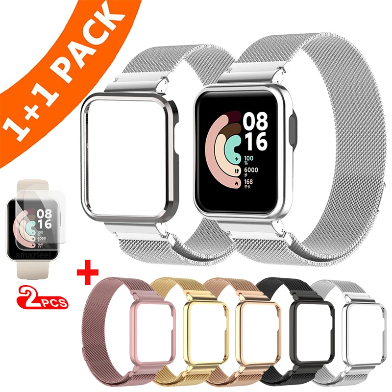 Защитный металлический корпус, браслеты из нержавеющей стали для Xiaomi Mi Watch Lite, ремешок, сетчатый ремешок, ремешок для Redmi Watch 2 2 Lite, защитная оболочка