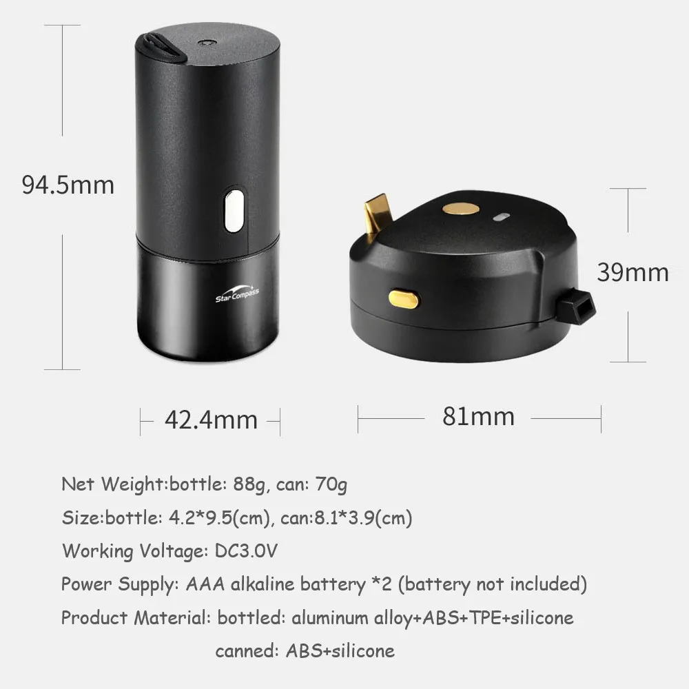 SizeBottle 4.2 x 9.5 cm Can 8.1x3.9 cm