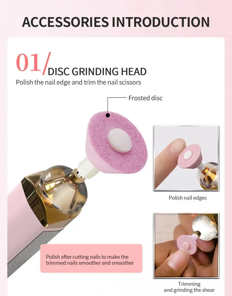 2. Низкий уровень шума и высокая скорость шлифования. 1-я скорость подходит для полировки поверхности края ногтя. Увеличенная мощность на 2 скоростях, подходит для шлифовки мозолей на краях ногтей или ладоней