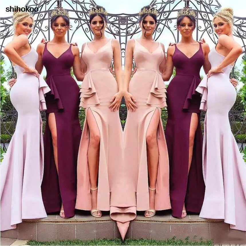 Женское вечернее платье-русалка, сексуальное длинное платье с V-образным вырезом и Боковым Разрезом для выпускного вечера, свадебные платья