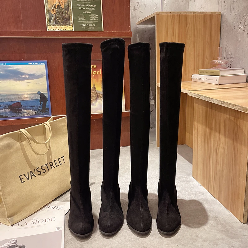 Новые облегающие сапоги из искусственной замши, привлекательные Сап...