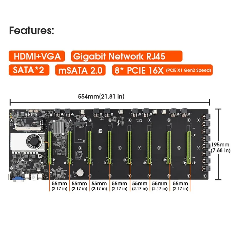 Расширяемые порты: 8 * PCIE 16X, 8*6pin PCIE X16 разъем питания, HDMI совместимый + VGA