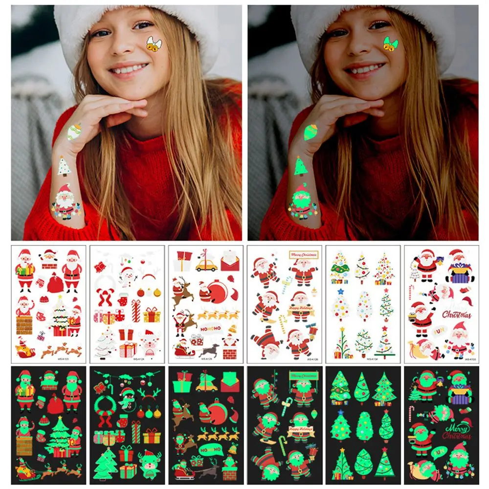 Подарочные наклейки со снежинками для детей, Светящиеся Татуировки на Рождество