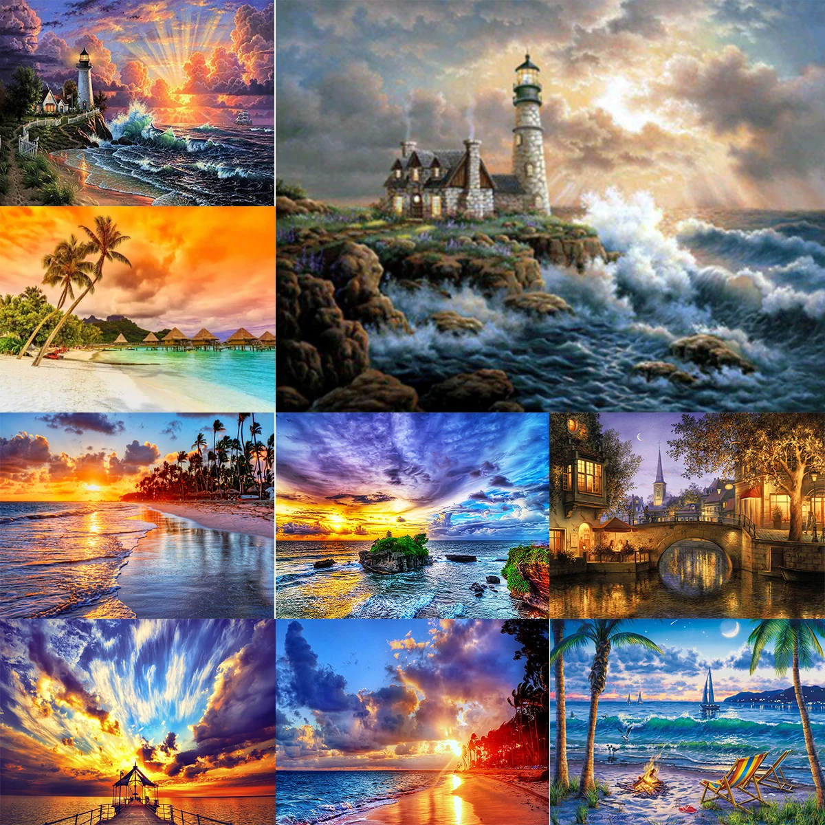 5D DIY алмазная живопись пейзаж закат пляж полная Алмазная вышивка ...