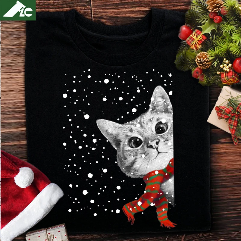 Милая футболка с рисунком Hello Christmas Cat, женская одежда, унисекс, хлопковая Футболка большого размера с изображением кошки, мамы, Рождественская футболка, винтажный Топ для женщин