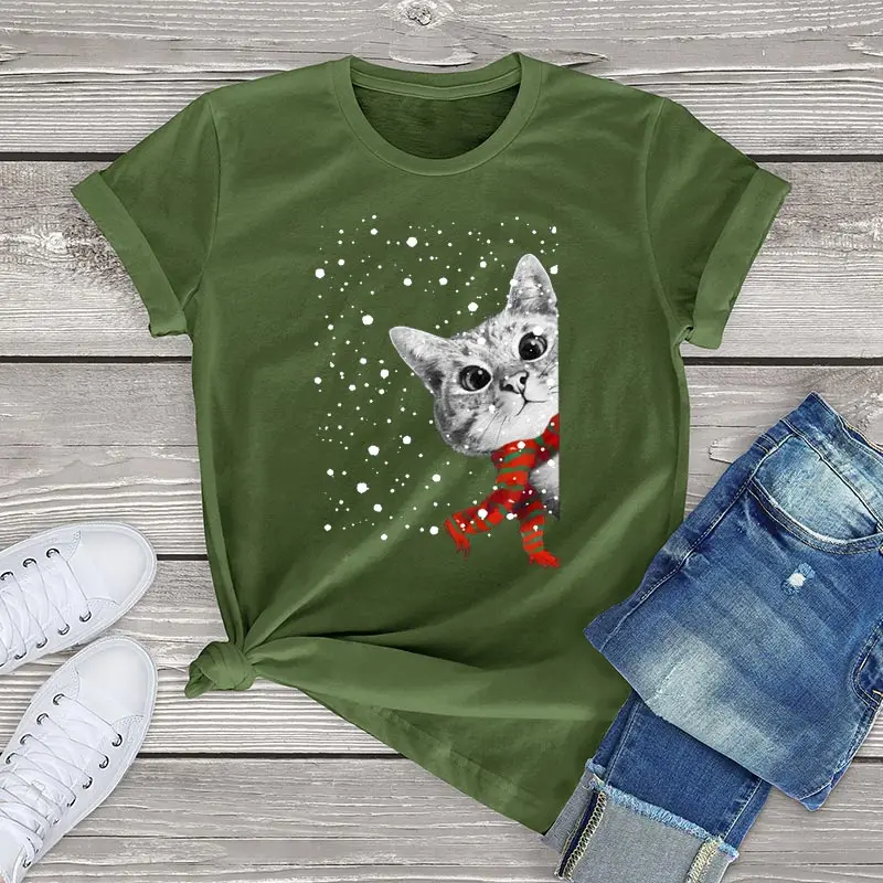 Милая Рождественская футболка с рисунком кошки Hello Christmas женская одежда унисекс хлопковая Футболка оверсайз с рисунком кошки и мамы Рождественская футболка винтажный женский топ