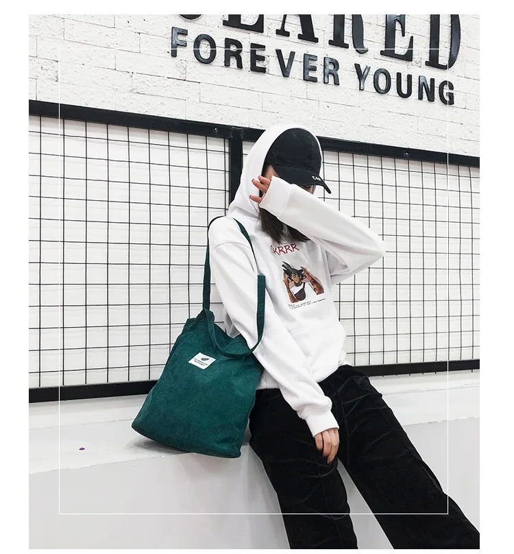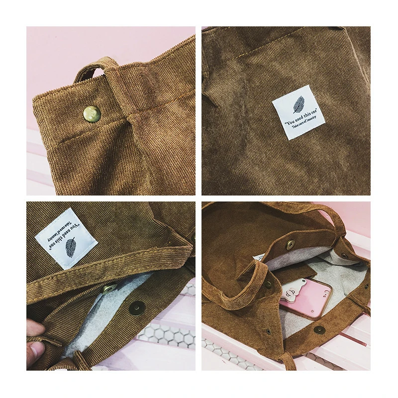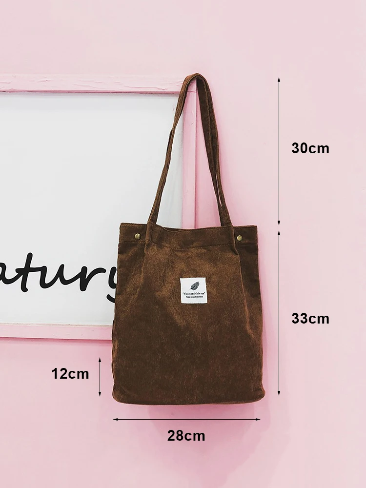 Сумка через плечо для женщин, холщовая сумочка из рубчатого вельвета, многоразовая женская, шоппер в повседневном стиле
