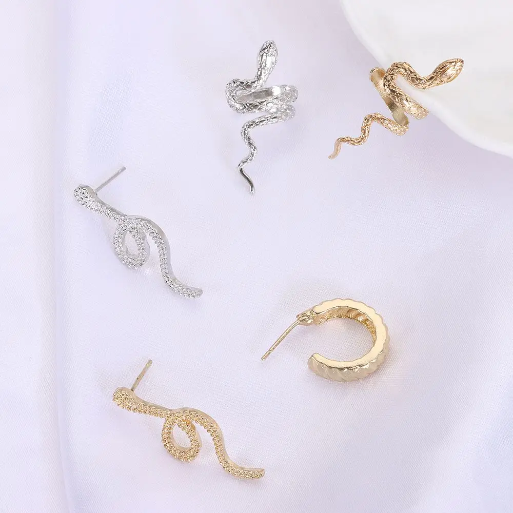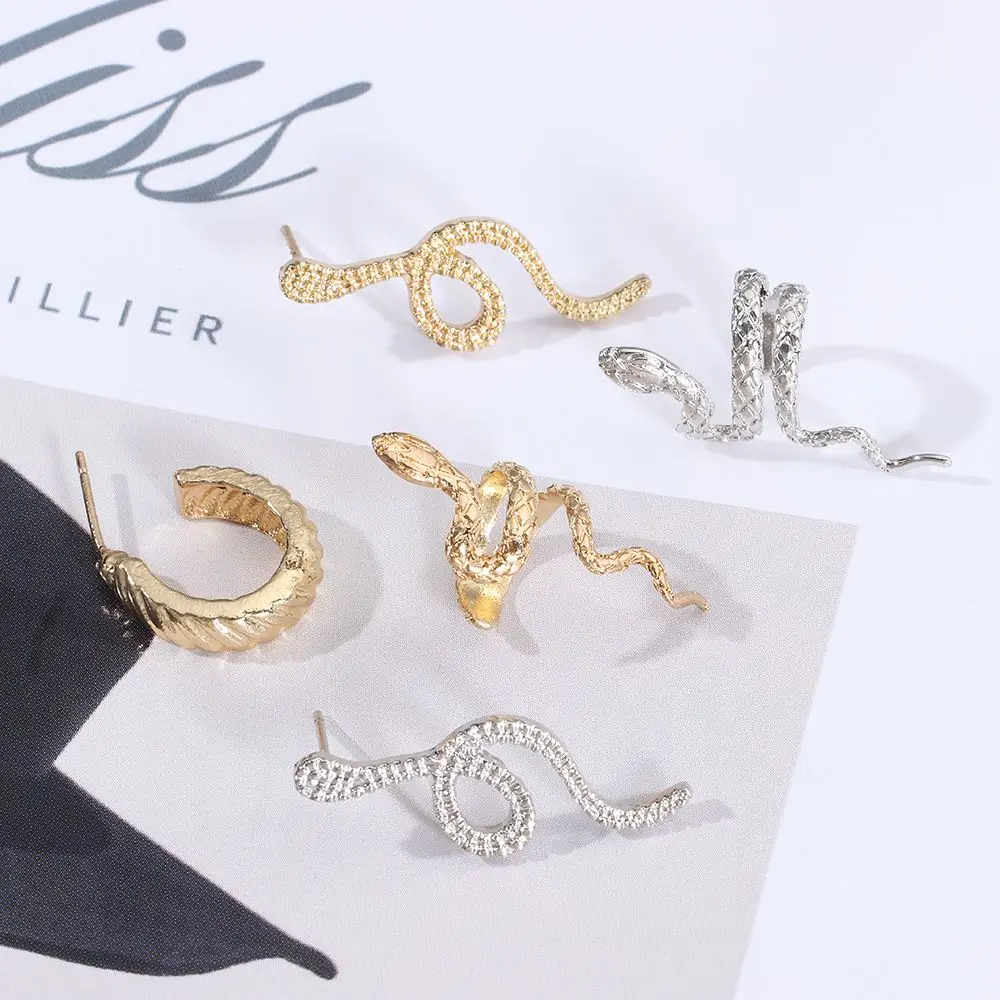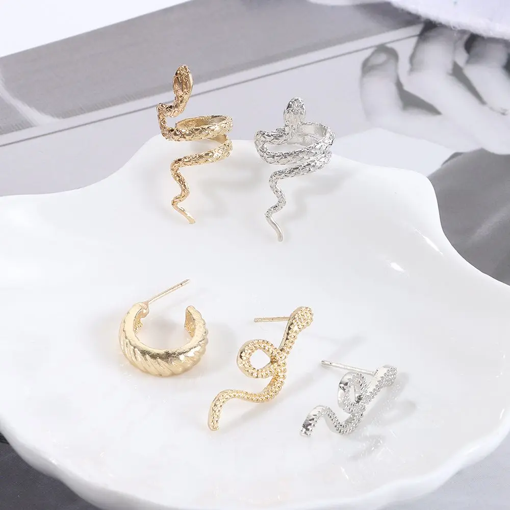 3 шт.компл. серьги-клипсы в виде змеи для женщин винтажные золотые клипсы для ушей клипсы в стиле панк Индивидуальные ювелирные изделия аксессуары Подарки