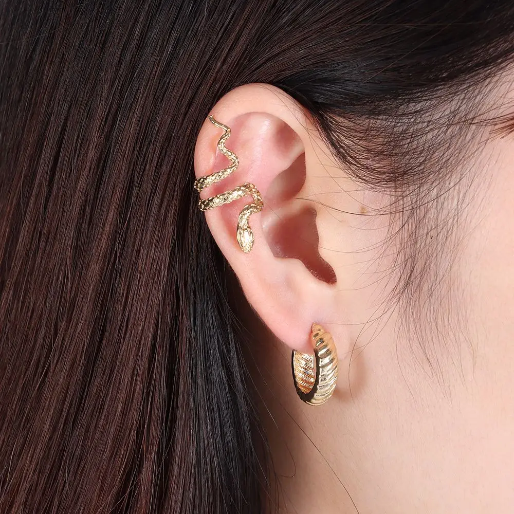 Золотые Клипсы-змеиные уши в стиле панк, винтажные ювелирные издели...