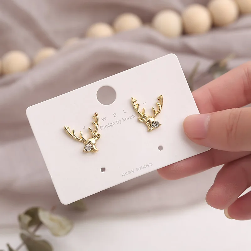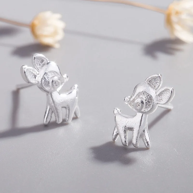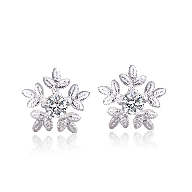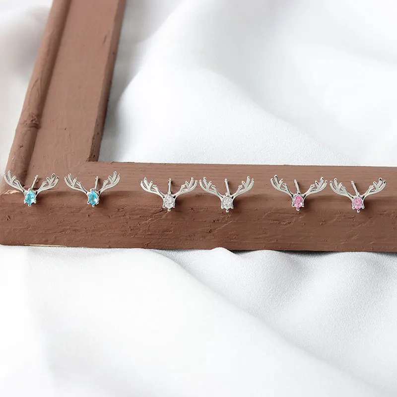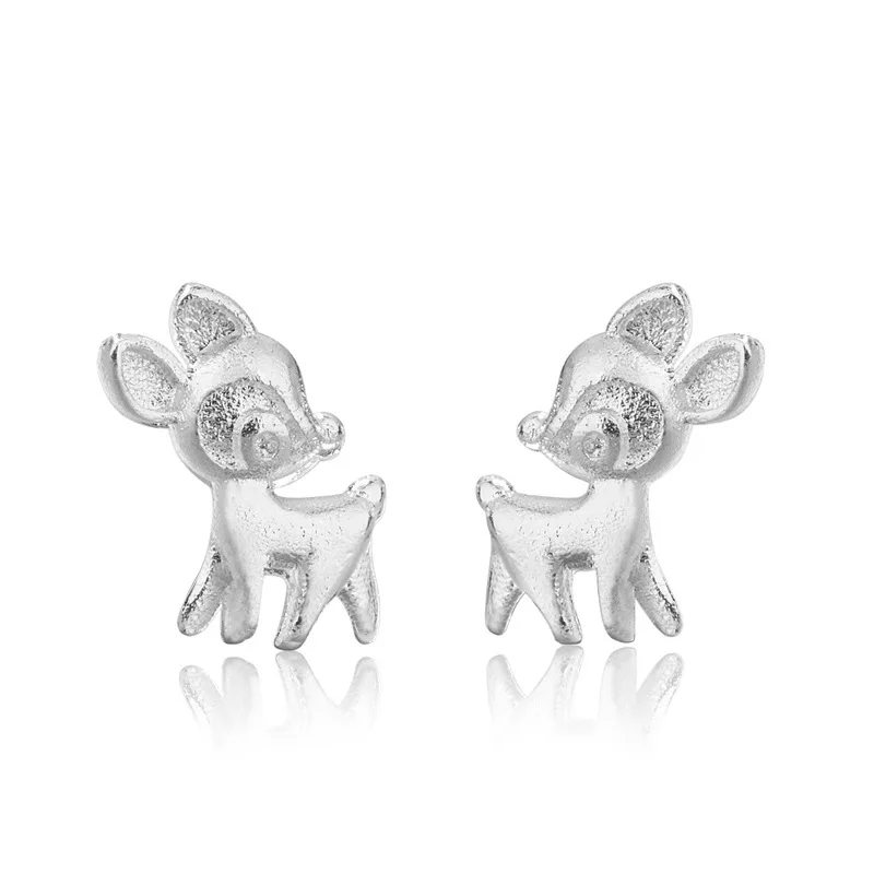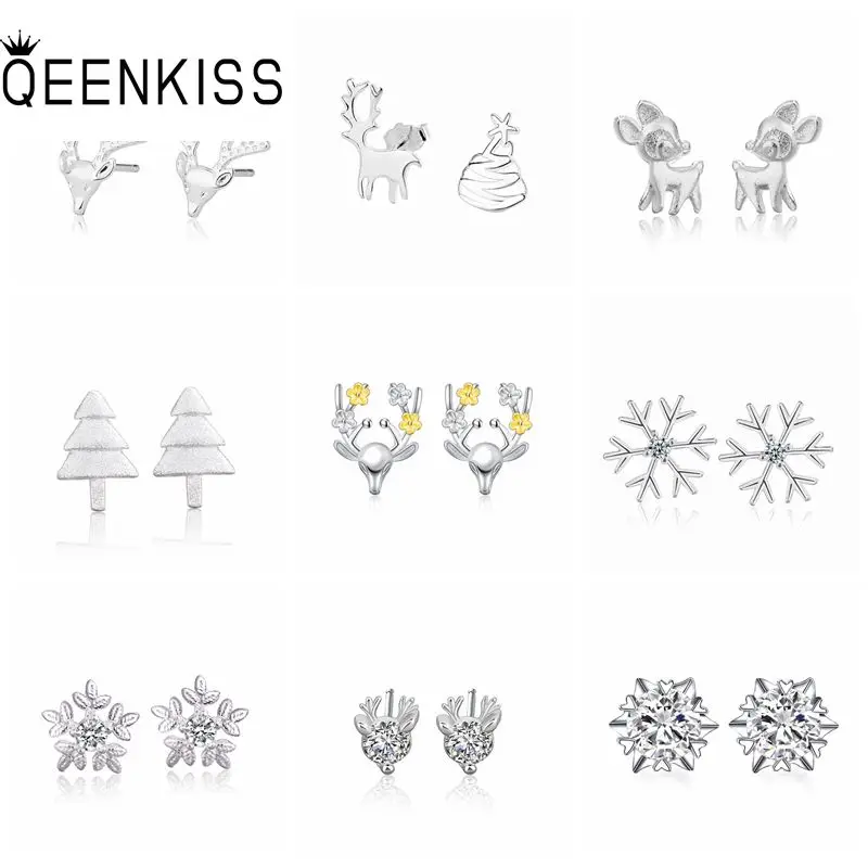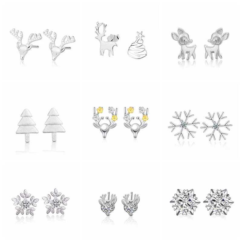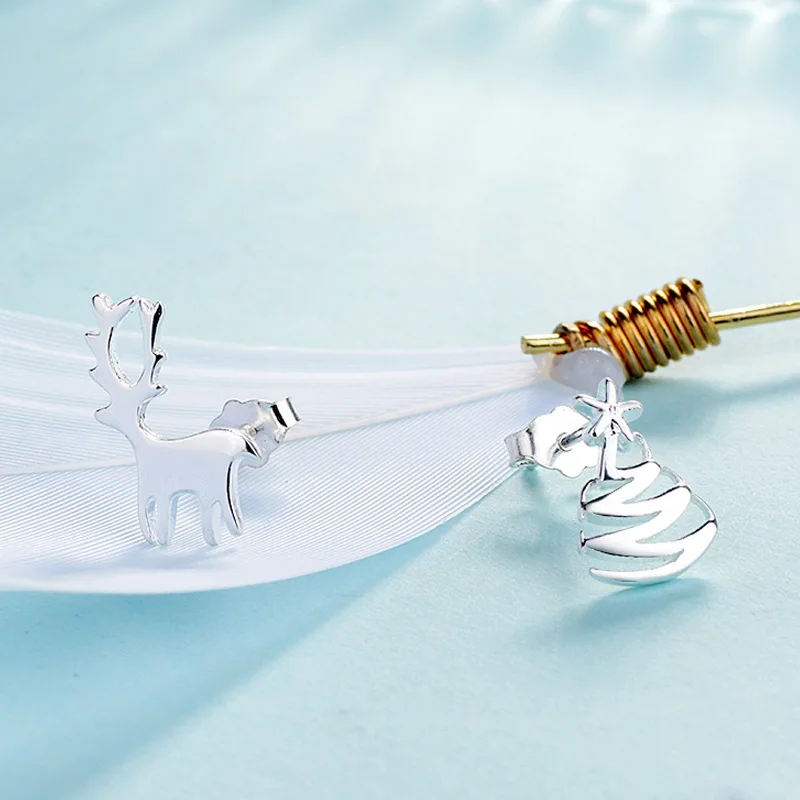 Женские серьги-гвоздики из серебра 925 пробы с оленем и снежинкой
