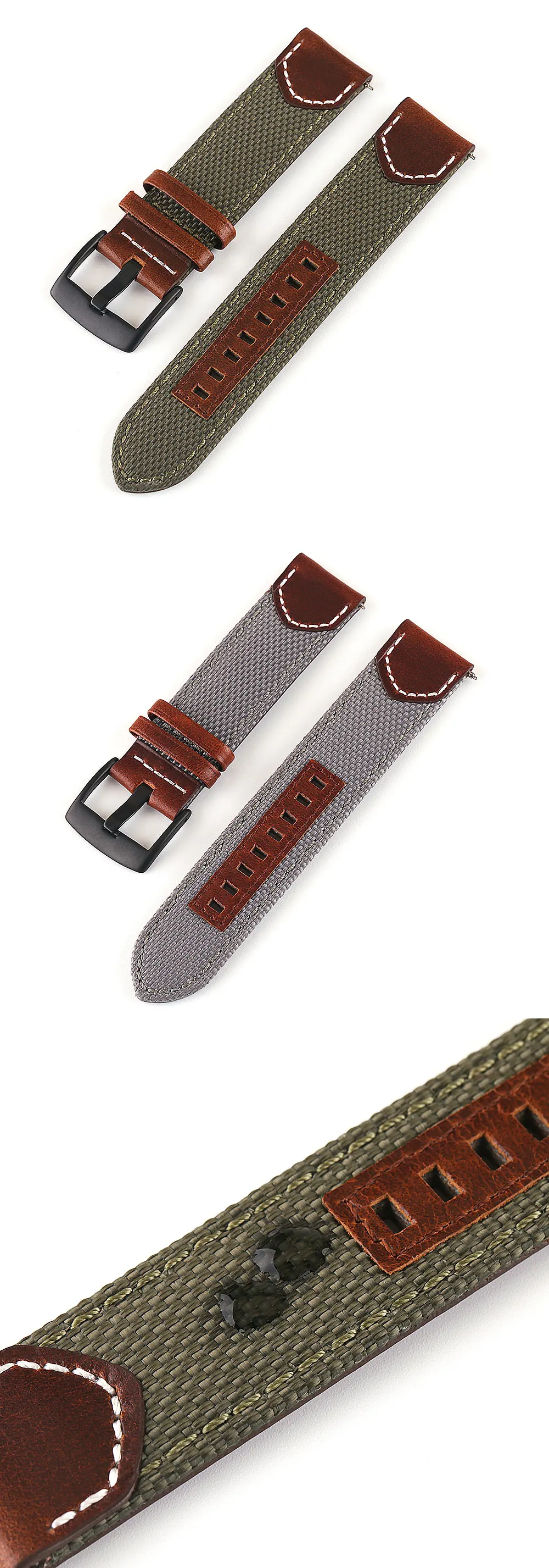 Холщовый кожаный ремешок Ремешки для наручных часов 20 мм 22 мм ремешок для часов Samsung ремешок для часов Huawei Часы для xiaomi huami для Garmin