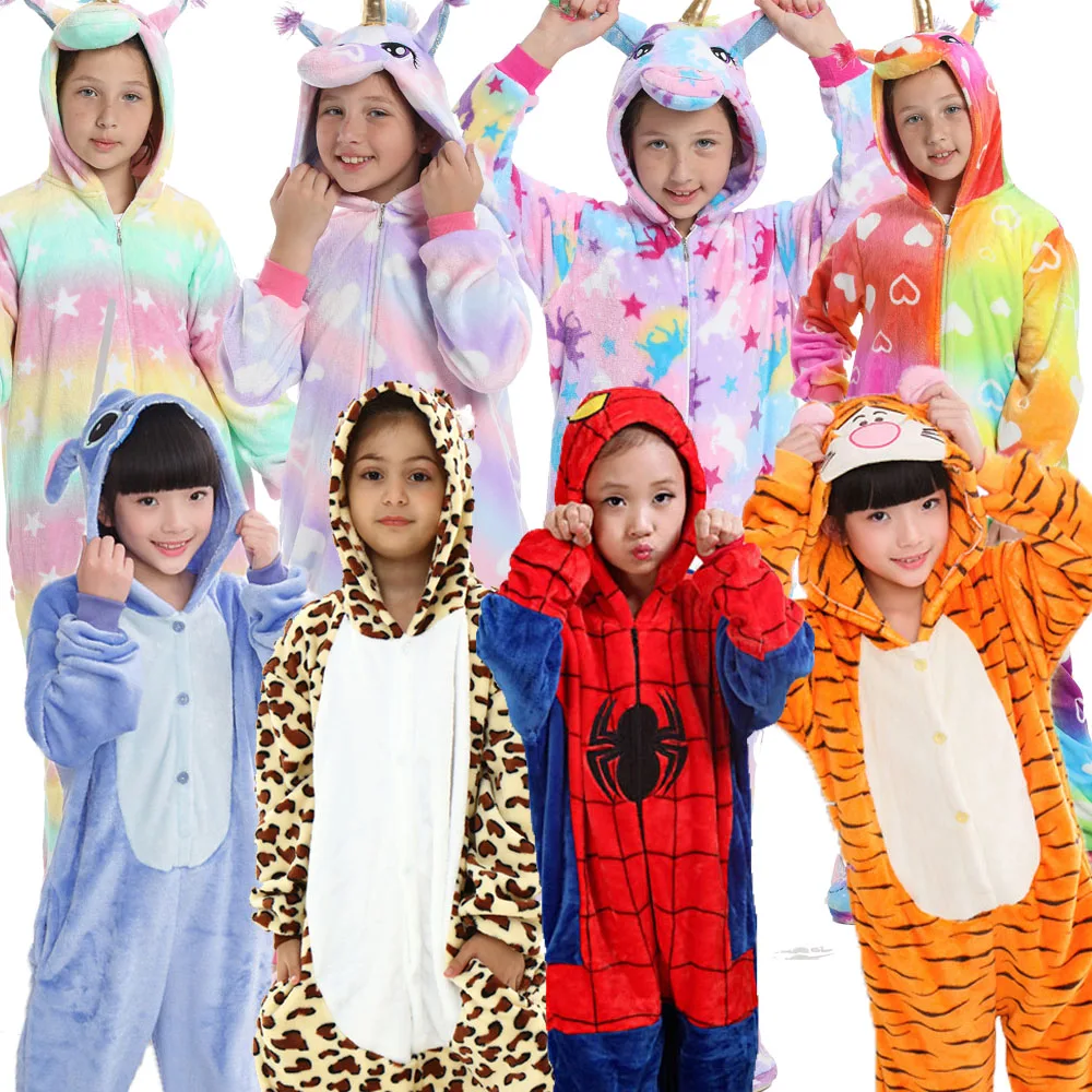Кигуруми костюм ститча паук леопард тигр животные единорог пижамы мультяшный комбинезон зимний комбинезон детская одежда для сна для мальчиков