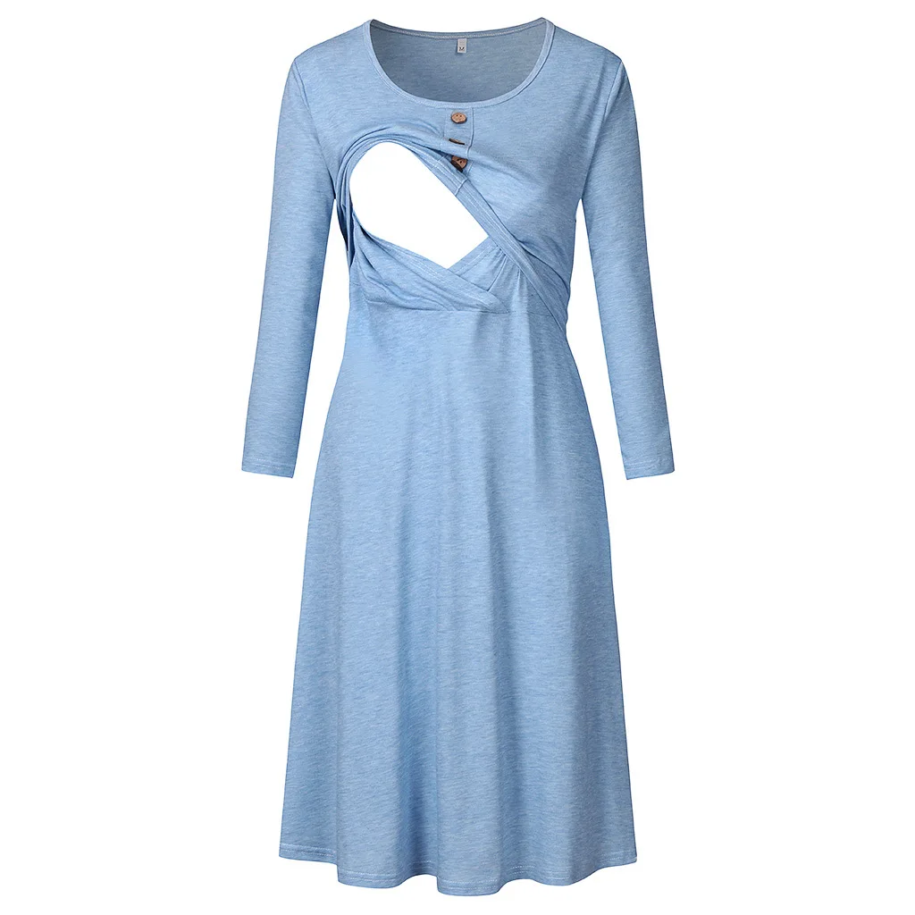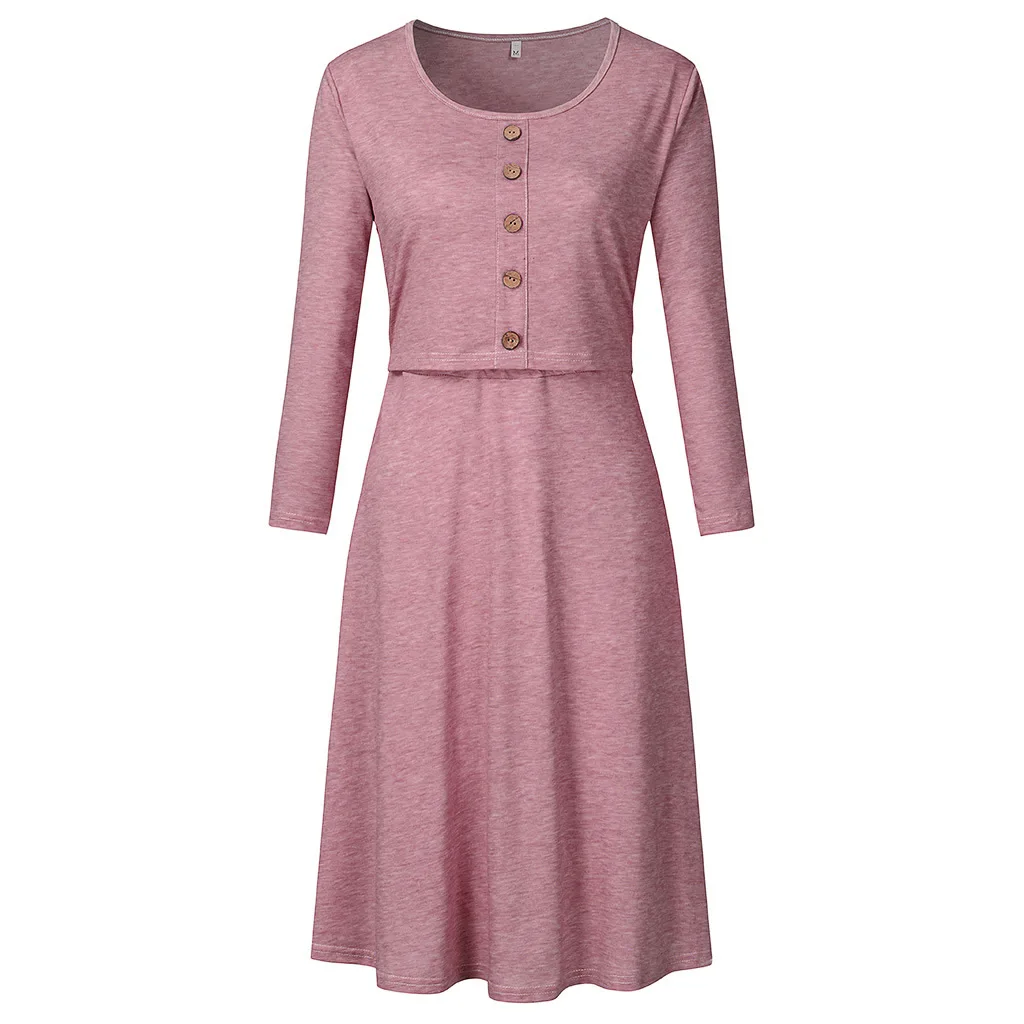 Новая одежда для беременных женщин с круглым вырезом и длинным рукавом платье для беременных украшенное пуговицами платье для кормящих матерей