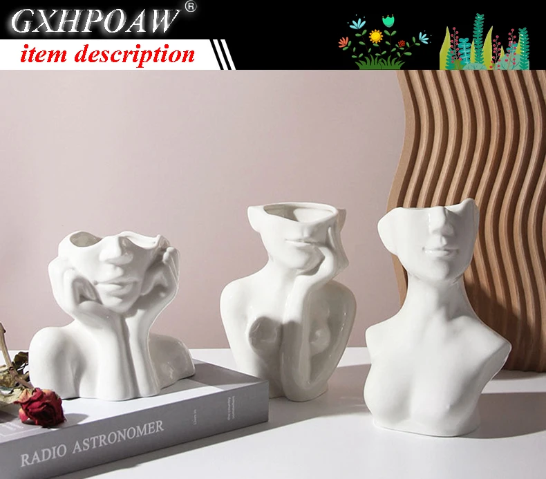 Абстрактная ваза для цветов с человеческим лицом, художественная креативная Керамическая скульптура, человеческая голова, растения, цветочные горшки, домашний декор, аксессуары, композиция