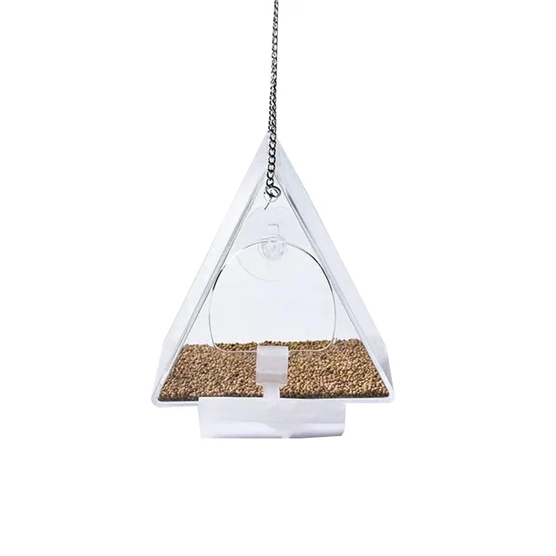 Треугольная прозрачная кормушка для птиц, кормушка из акрила и мета...