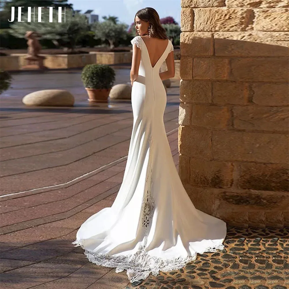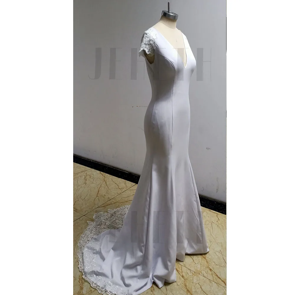 Простое атласное свадебное платье JEHETH с V-образным вырезом и юбкой-годе для женщин с открытой спиной и рукавом-крылышком кружевное винтажное свадебное платье длиной до пола под заказ