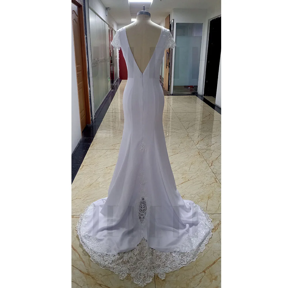 vestido de novia vintageCap Sleeve V-Neck Wedding Dress