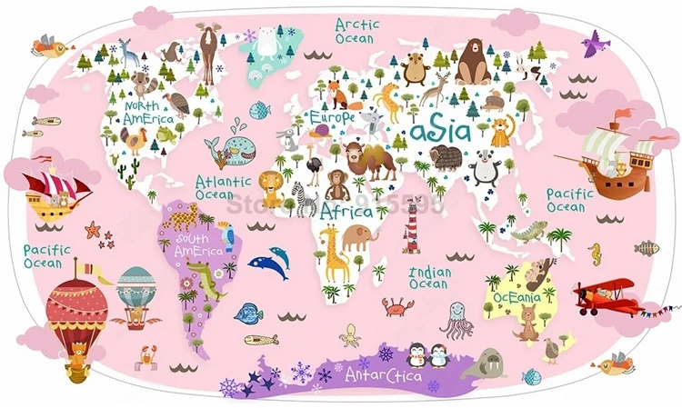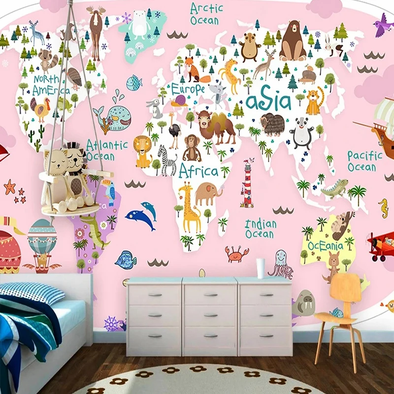 Фотообои большого размера для детской комнаты, мультяшная карта, животные, самолет, парусный спорт, воздушный шар, 3D Рисунок