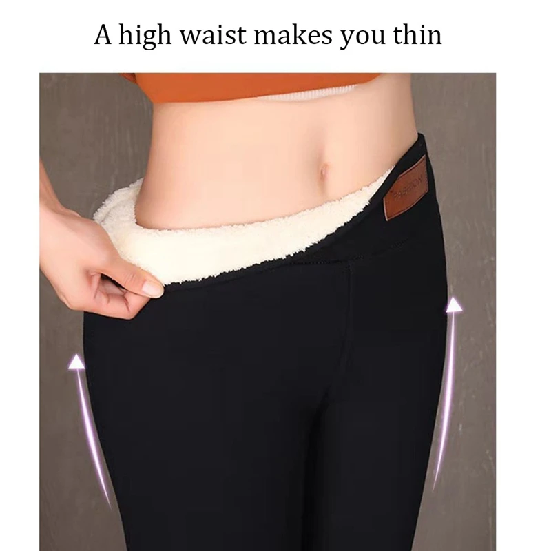 Теплые штаны с высокой талией из 12% спандекса, зимние облегающие п...