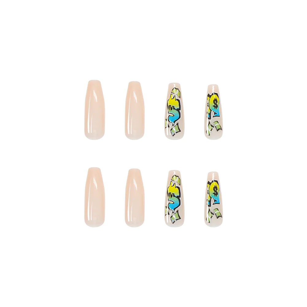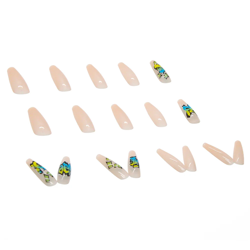 Накладные ногти Балерина 24 шт.коркор., накладные ногти со съемным гроб, накладные ногти с панк-граффити, дизайн, полное покрытие, маникюрные накладки