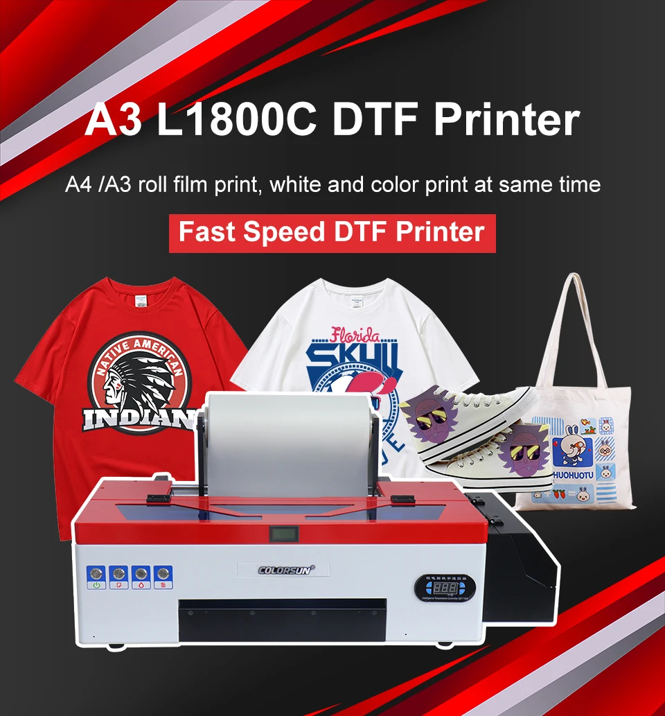 Colorsun A3 DTF принтер L1800 DTF принтер для футболок толстовок прямой к пленочному принтеру с печи для домашних животных и роликом A3 DTF принтер