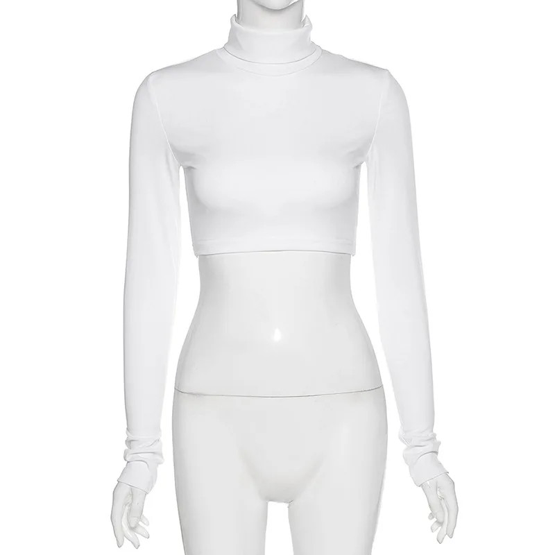 Водолазка с длинным рукавом, белые сексуальные кроп-топы, повседнев...