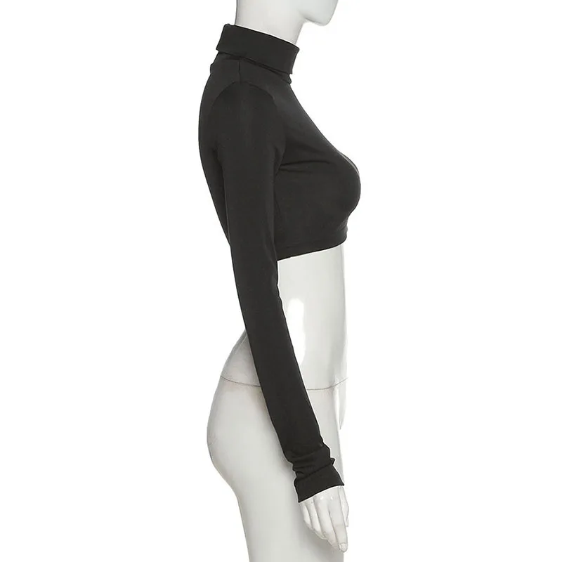 Топ женский осенне-зимний, с длинным рукавом и воротником-хомутом