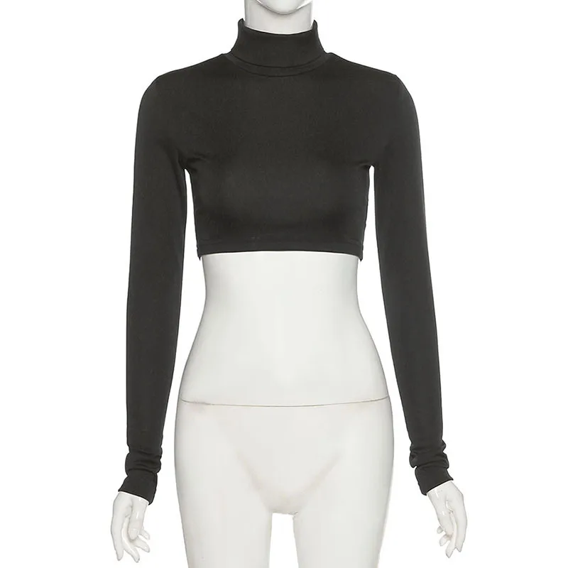 Базовая облегающая женская однотонная водолазка, осенняя эластичная повседневная майка, Женский Универсальный укороченный топ для улицы и активного отдыха