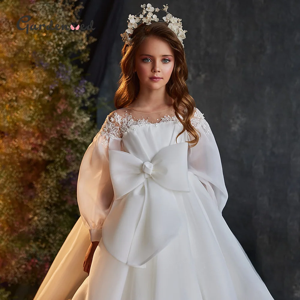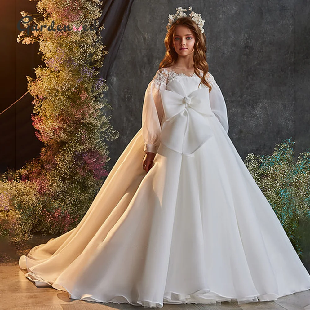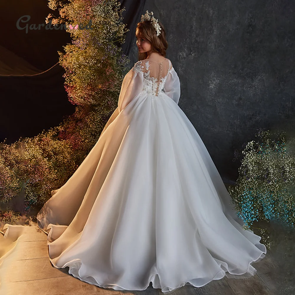 Платье с длинным шлейфом и оборками для девочек; Праздничное детско...