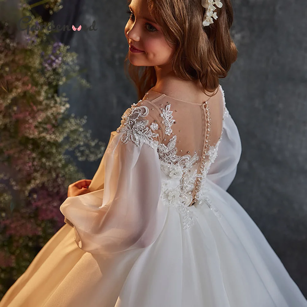 Пышное кружевное вечернее платье для маленьких девочек, детские многослойные платья с цветами для девочек, платье принцессы высокой длины, милые платья для первого причастия