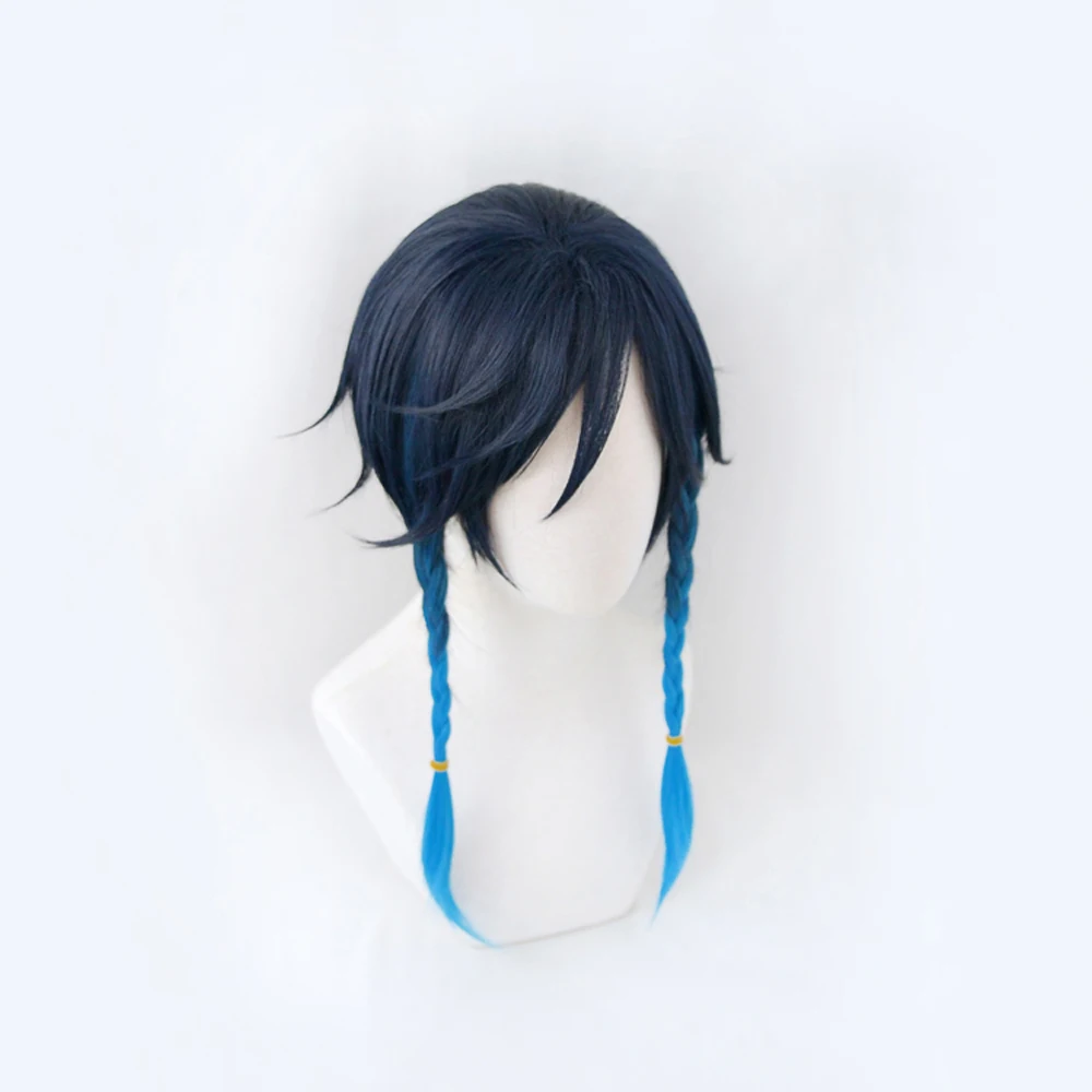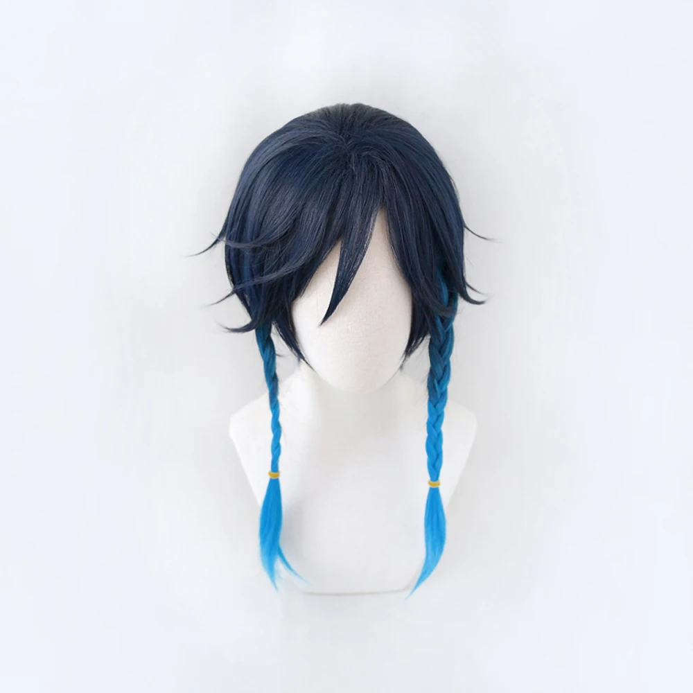 Парик для косплея из синтетического волокна Genshin Impact Venti, термостойкий, с синим градиентом и короткой оплеткой, с бесплатной шапочкой