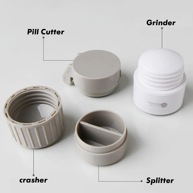 Особенности:1. Поставляется с небольшой решеткой для резки, которую можно легко разрезать.2. Многоуровневый дизайн, шлифовка лекарств, резка лекарств, медицинская коробка 4 в одном, компактный и легко носить с собой, можно быстро отполировать в мелкие Порошковые таблетки.