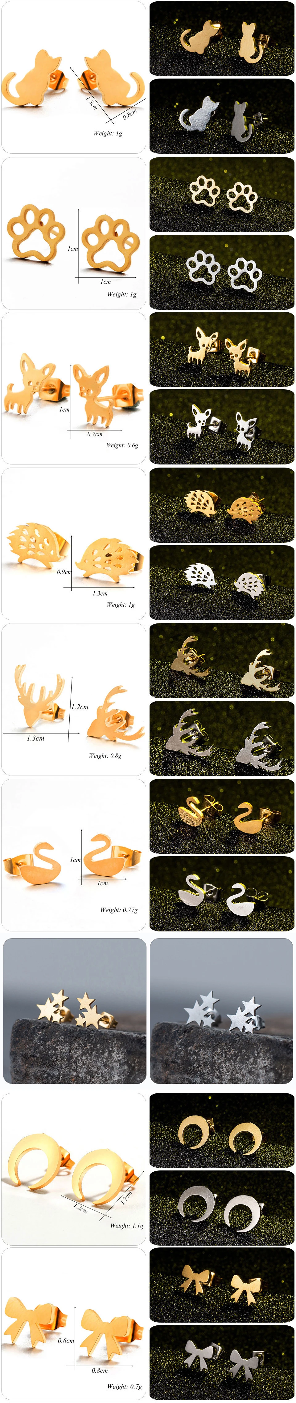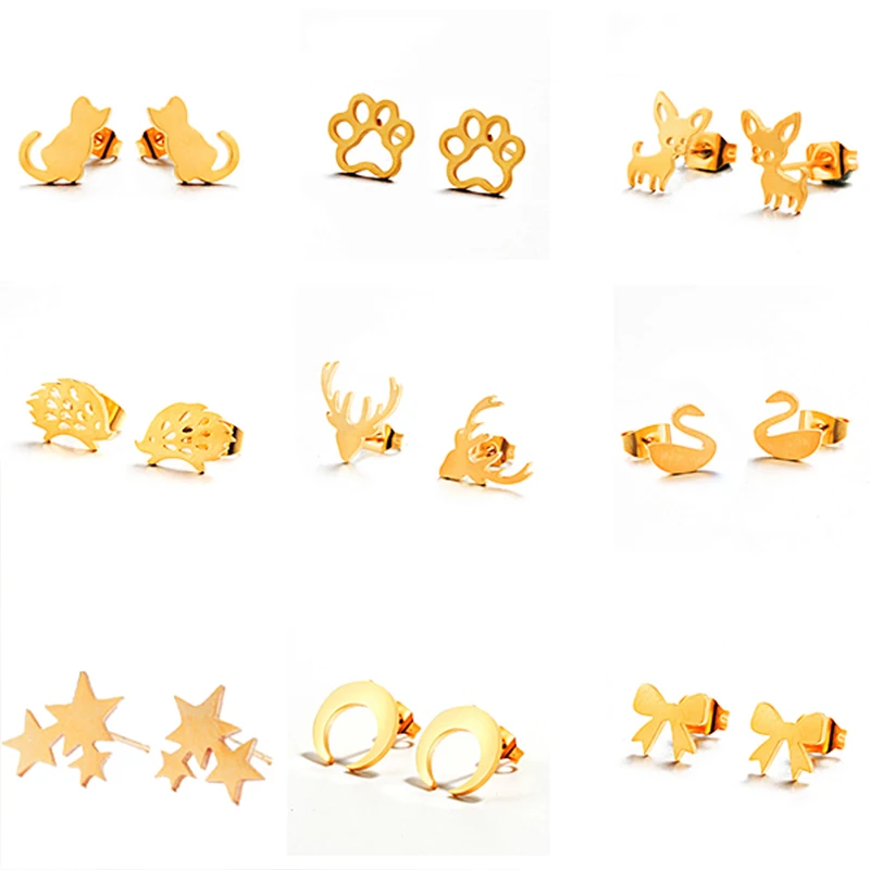 Милые серьги-гвоздики, модные женские мини-серьги из нержавеющей стали золотого цвета, женские минималистичные ювелирные изделия, аксессуары для подарка