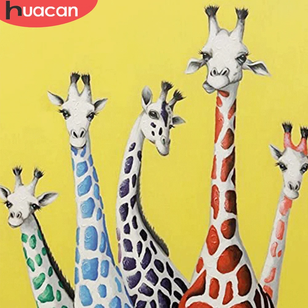 Алмазная 5D мозаика HUACAN, картина с жирафом, полное квадратноеКруглое сверло, Набор для вышивки, ручная работа