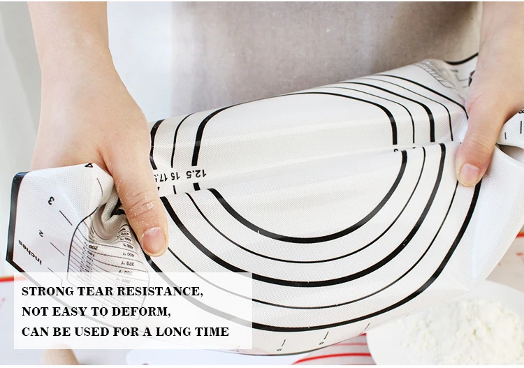 Очень трудно двигаться, когда вы раскатываете тесто и всегда сохраняете стабильность на столе. Супер Кухонный коврик также идеально подходит для выпечки, прилавка, коврик для пиццы, коврик для размещения, детский коврик и так далее.