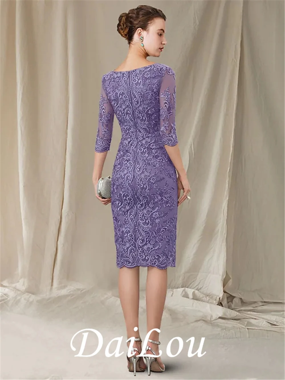 Повод: Свадебная вечеринкаСтиль: элегантныйСилуэт: футляр/колоннаПодол/шлейф: длина до коленаВырез: вырез лодочкойТкань: кружево, шифонЗастежка: молнияРукав Длина: 3/4 Длина рукавТалия: натуральнаяУкрашение: бант (ы), аппликацииПолностью Подкладка: нетВстроенный бюстгальтер: ДаСклеивание: Да