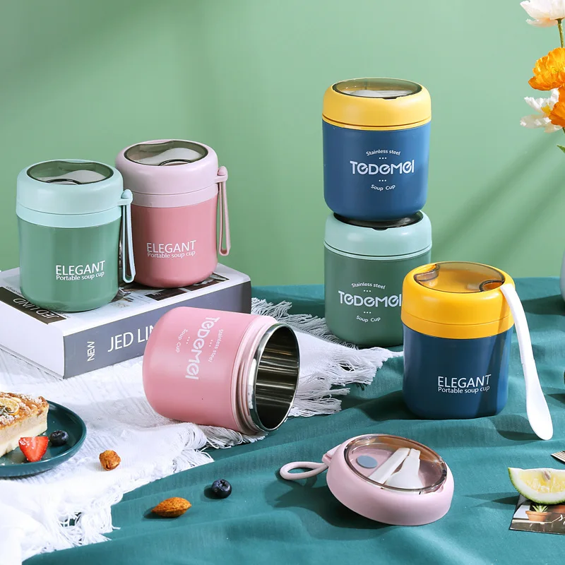 Мини термо Ланч-бокс контейнер для еды с ложкой из нержавеющей стали Вакуумная чашка для супа изолированный Ланч-бокс taza desayuno portatil