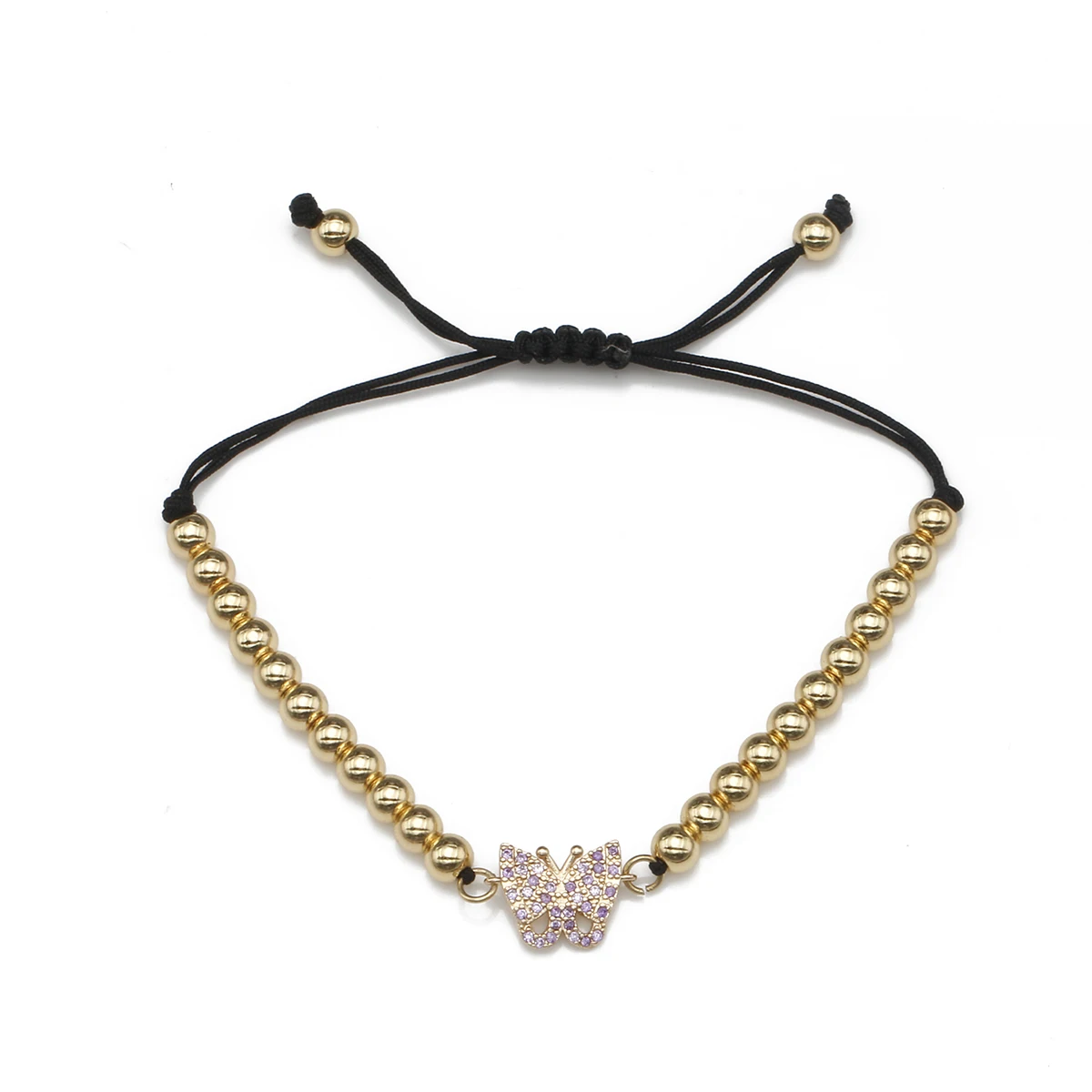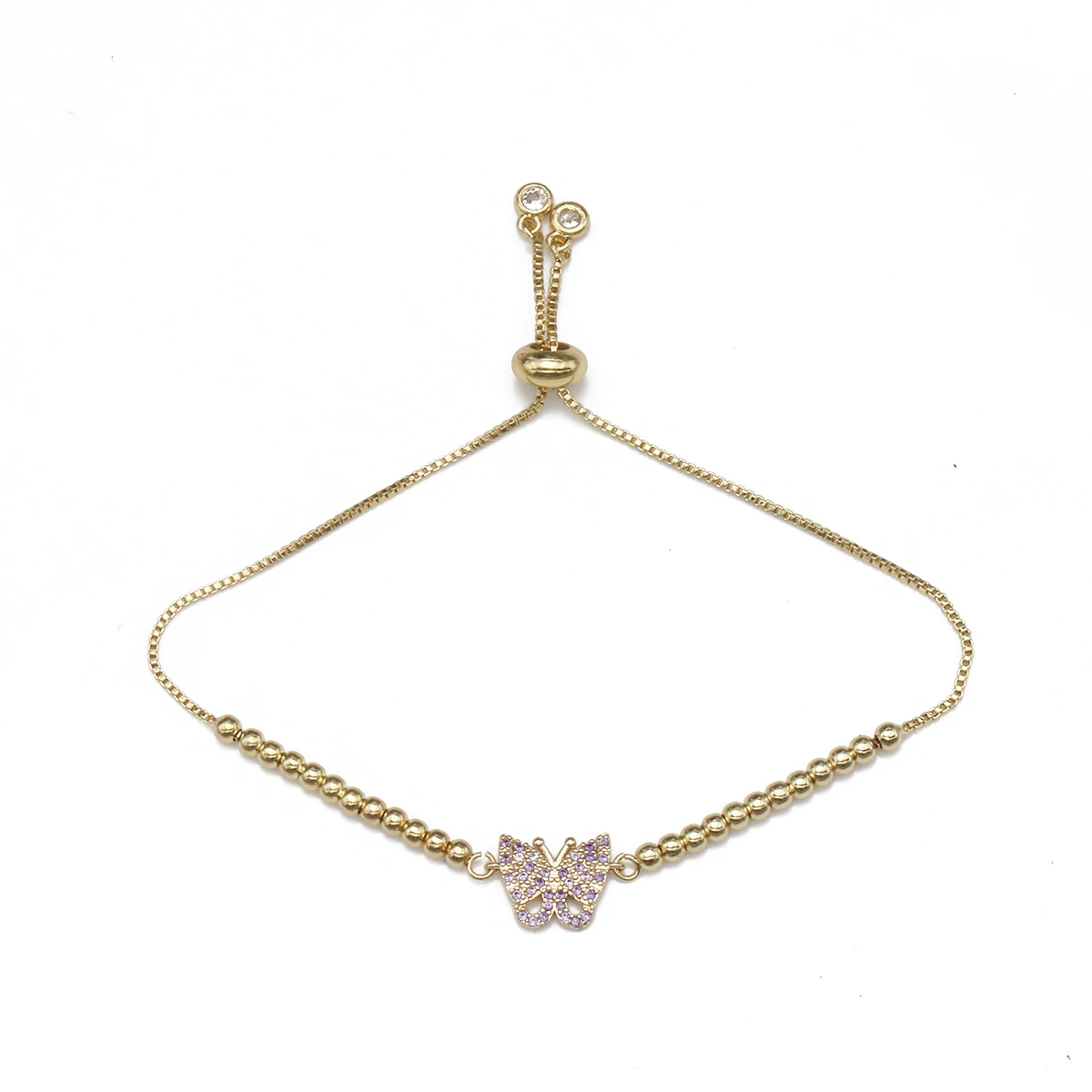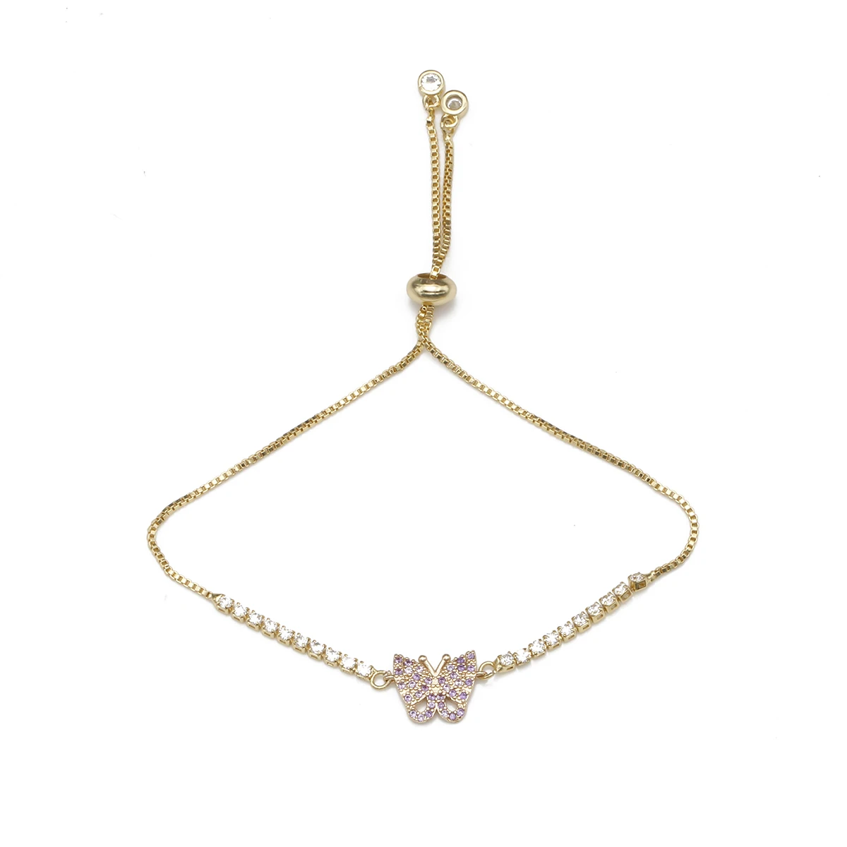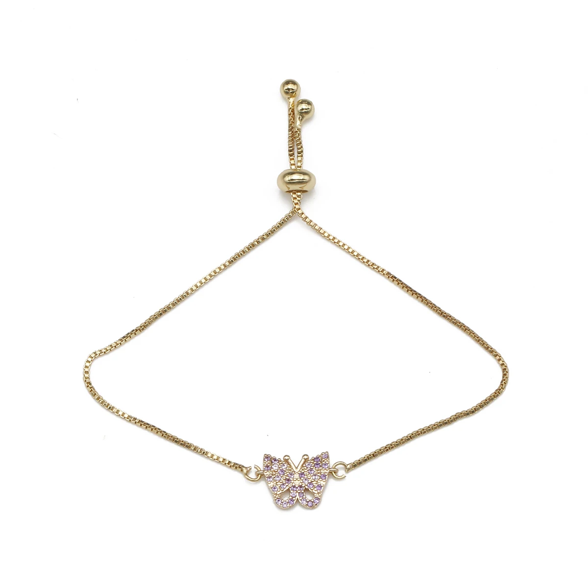 Название: модные вечерние ювелирные изделия с фиолетовыми бабочками и кристаллами AAA CZ, элегантный браслет для женщин, Браслет «насекомое», подарок для пары, регулируемая цепочка