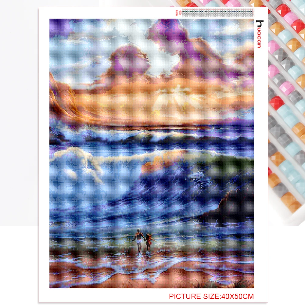 Алмазная мозаика Huacan, вышивка пар, морской берег, 5D алмазная живопись, пейзаж, персонализированный подарок настенные картины
