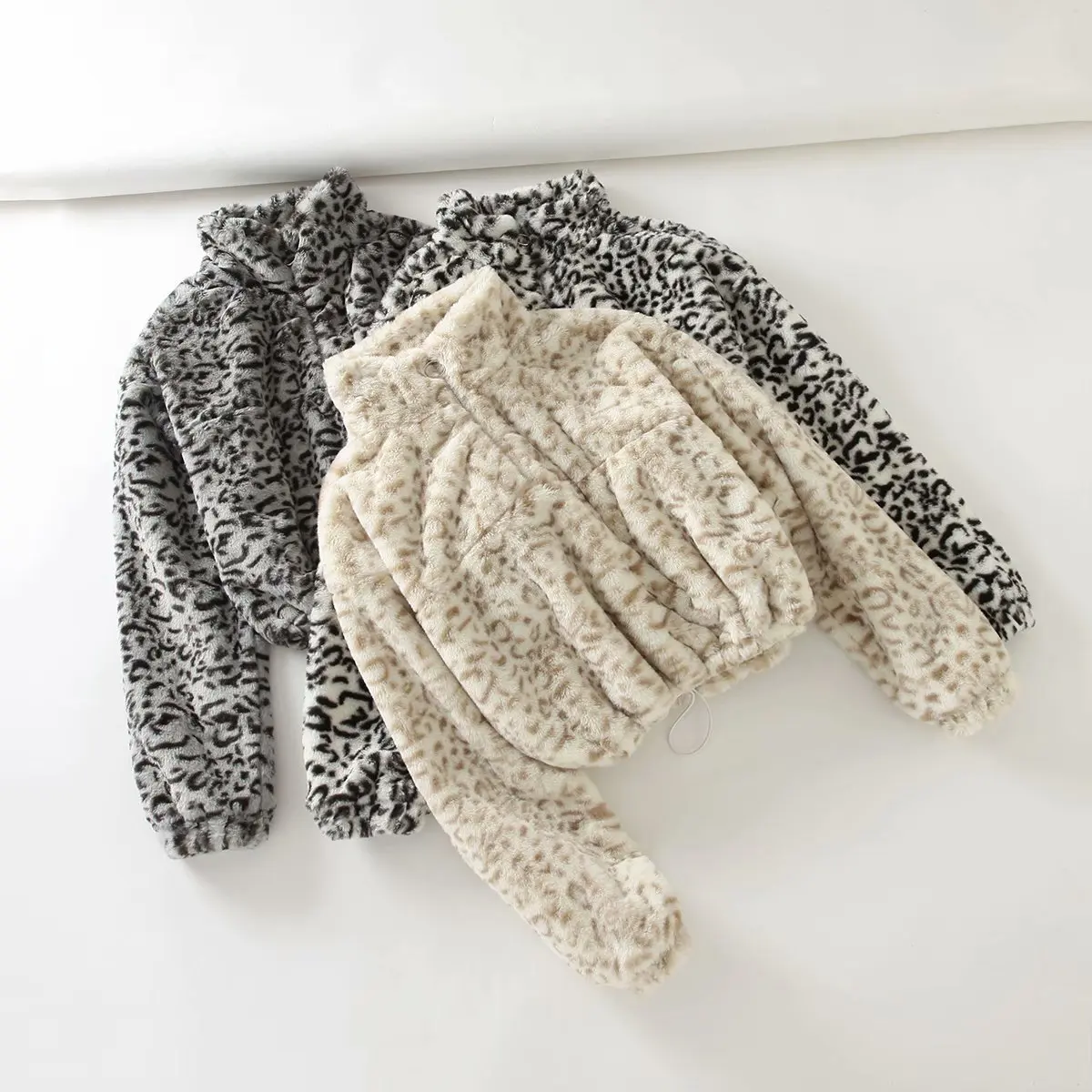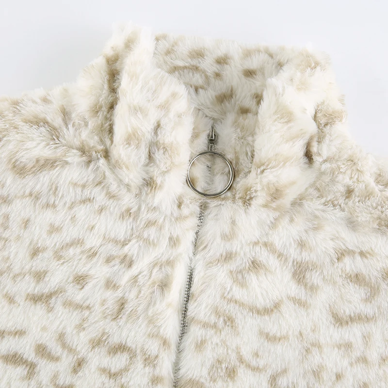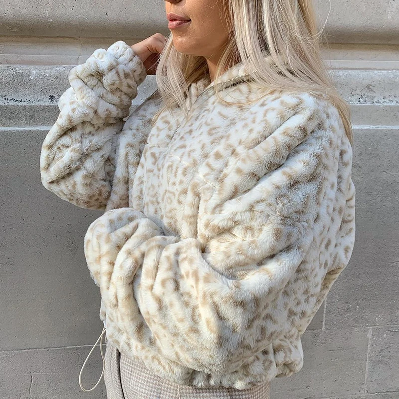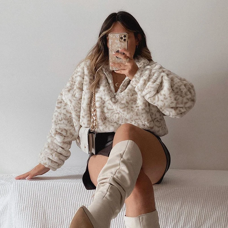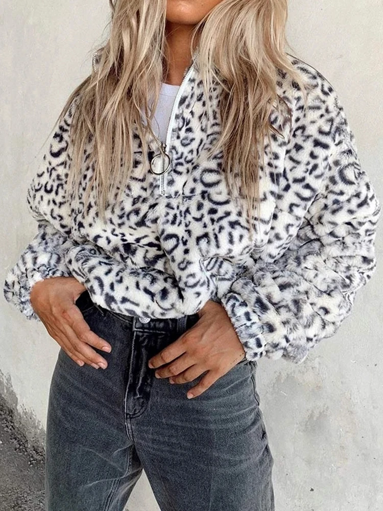 Женский свитшот на молнии, с леопардовым принтом и кроличьим мехом
