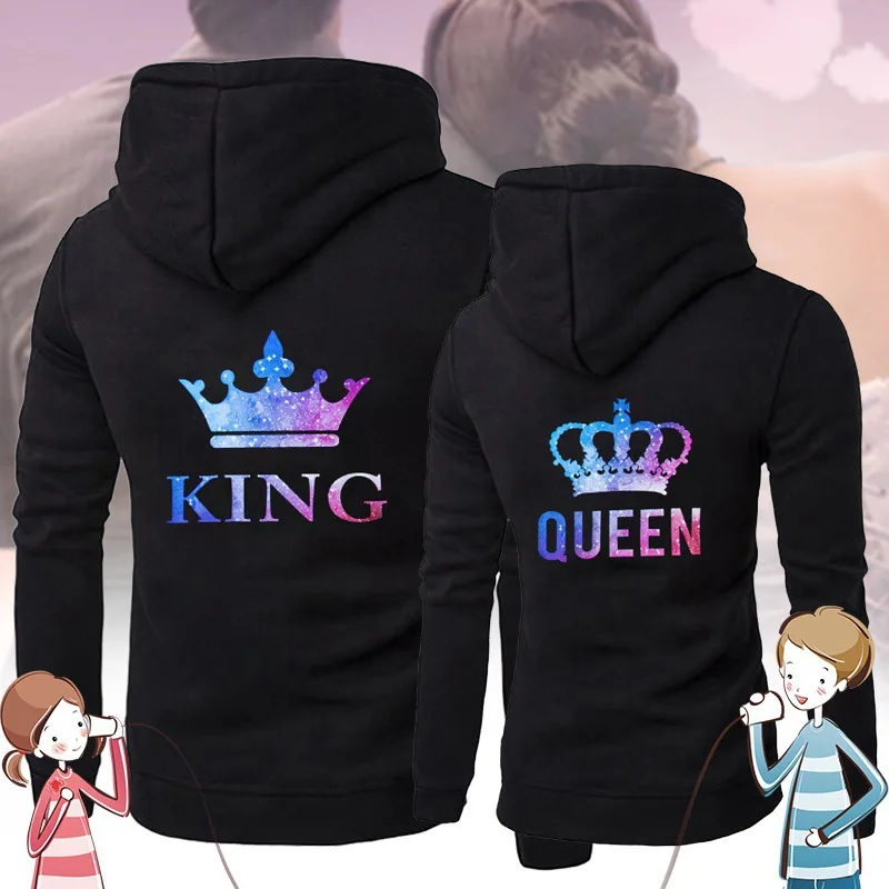 Толстовка с капюшоном для влюбленных Queen King, Модный спортивный костюм для пар, свитшот с капюшоном, детская одежда в стиле хип-хоп для мальчиков, флисовое пальто в готическом стиле