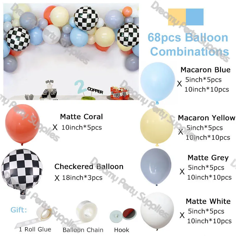 Гоночный воздушный шар в форме автомобиля Арка 2th День Рождения Декор Дети Мальчики 68 шт Синий Желтый баллон комплект гирлянды черный клетчатый Глобус фон