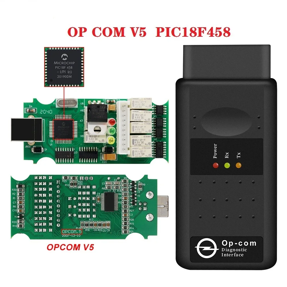Считыватель кодов CAN-BUS OPCOM V5 OBD 2 для Opel, диагностический сканер OBD2 PIC18F458, автомобильный тестер CAN-BUS OBD