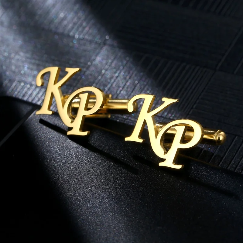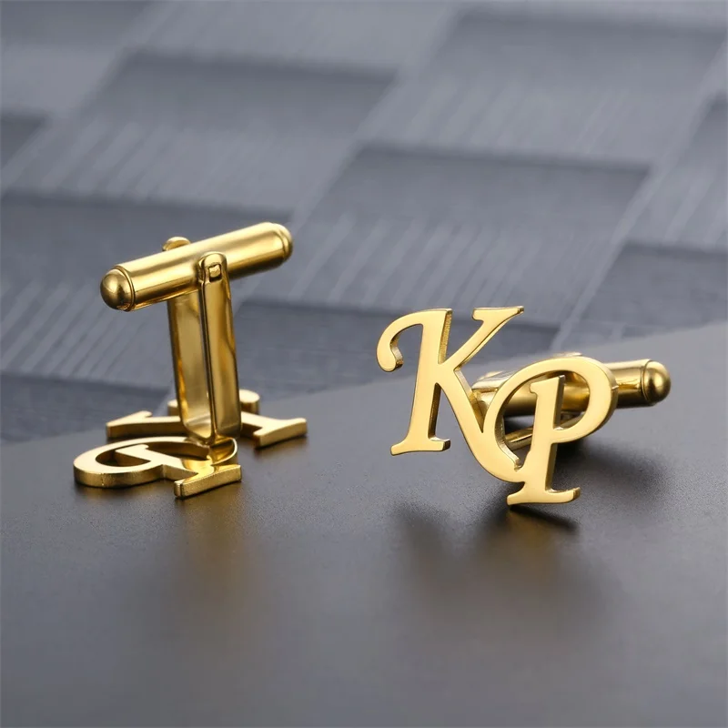 Мужские золотые запонки с двумя буквами, из нержавеющей стали