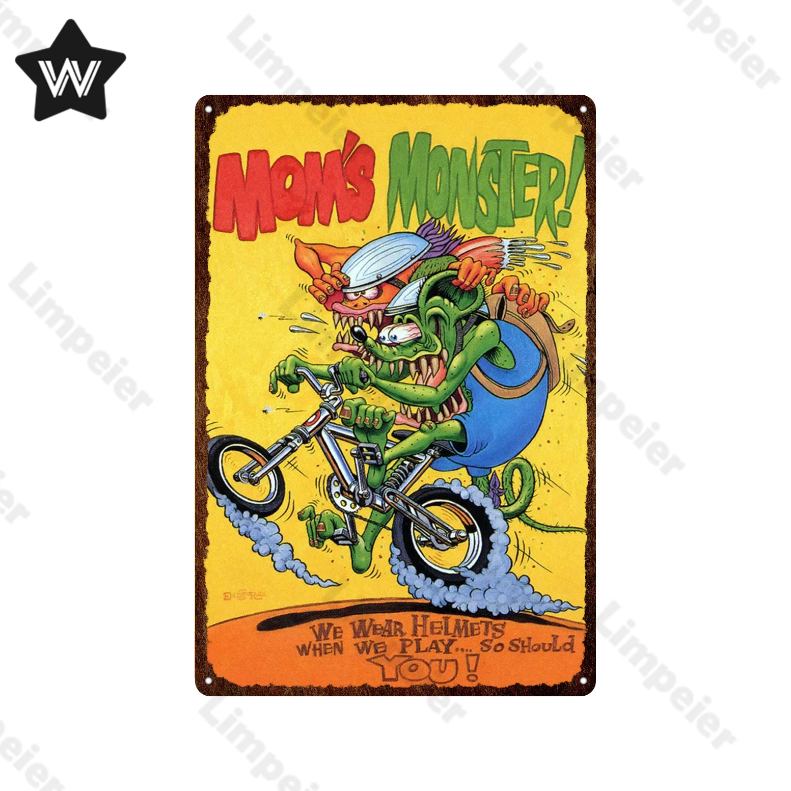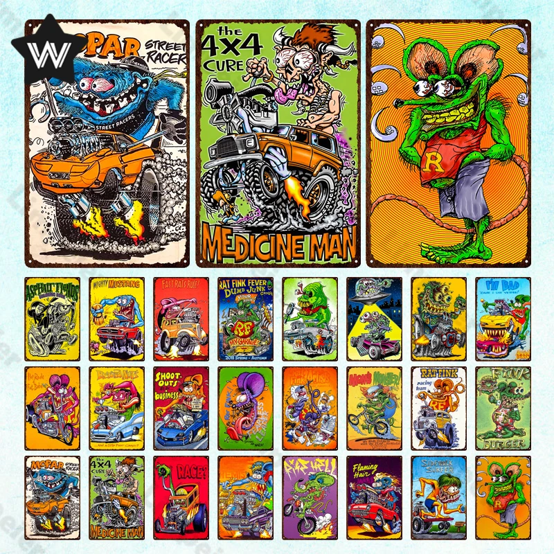 Rat Fink винтажный металлический постер жестяной знак, металлическая пластина, Мультяшные настенные Стикеры, ретро Оловянная табличка, потертый металлический знак, мужская пещера, декор для клуба